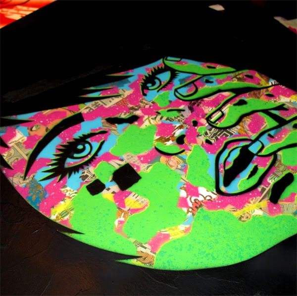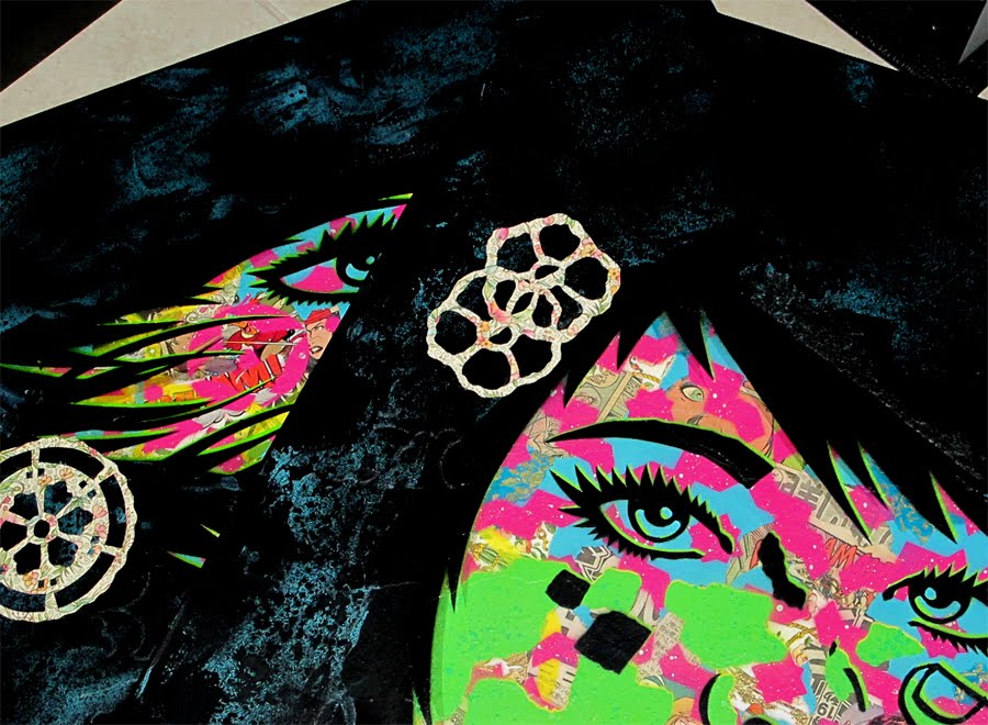 Via Inprogress Magazine::I don’t exactly know his secret but it’s like staring at a woman’s personality filled with comical stories and a sort of cartoony filled Karma which started it’s aura as early as the 70’s. That might not make much sense but once you look at his work you’ll more than likely get the same feeling. His work is definitely an inspiration to those attempting to Stencil or Collage and also shows you can get past the very common stencil style and add crazy personality to a piece. I personally love stencil work and though I love Banksy’s work I do get tired of the Banksy clones really quick, there’s always a stencil artist doing a little girl by a soldier, or even a bomb falling by an innocent woman, but when you can be original and still tell a story or just make the viewer smile using your own style I think you really solidify yourself as an artist and person who is capable of inspiring… For more Click HERE